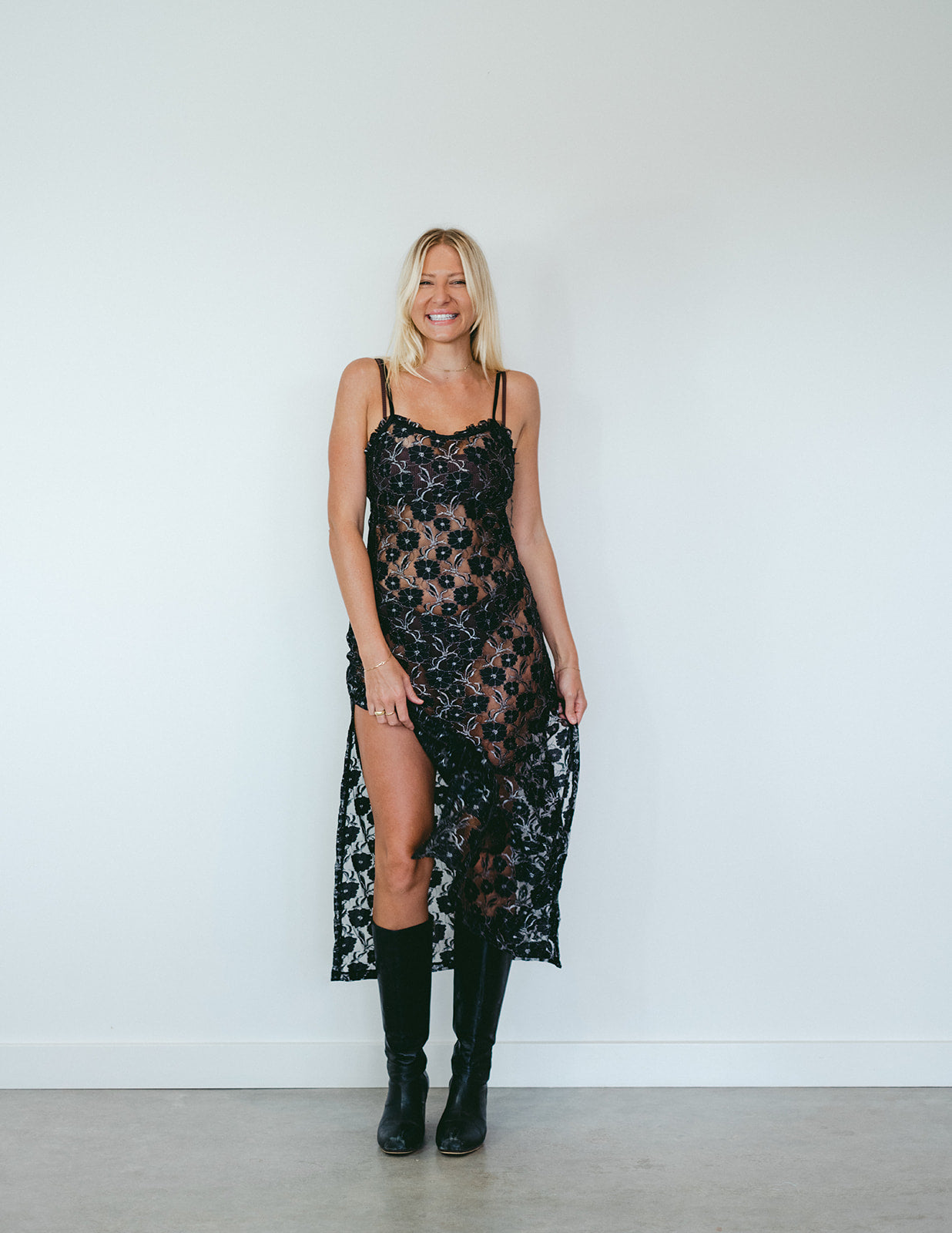 Made from a delicate lace this dress is a staple for your wardrobe. She can be worn on her own or layered with our Yasmin Long sleeve, Yasmin Tee or our Elm Blouse.