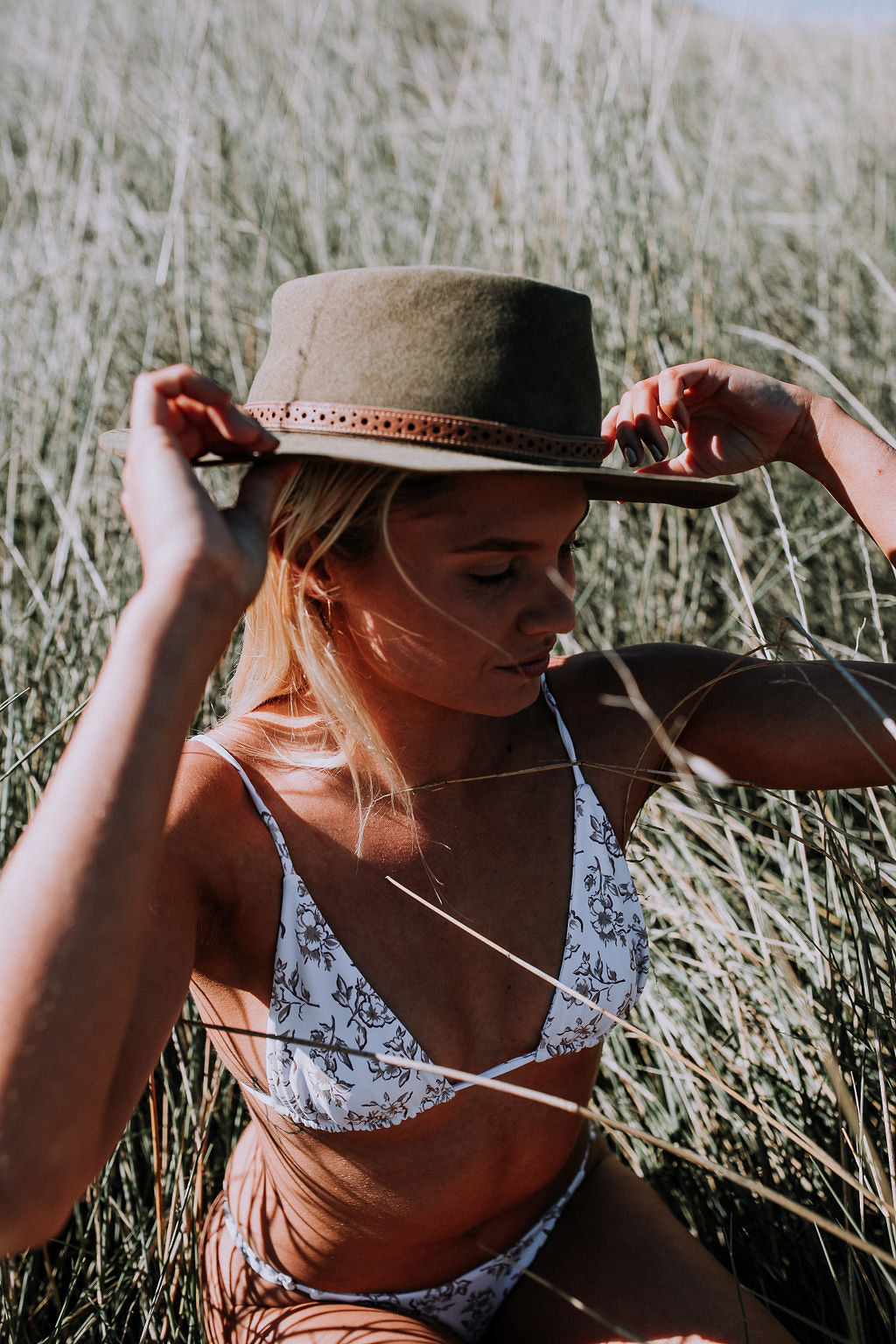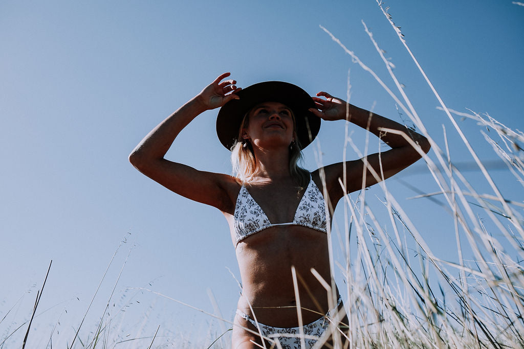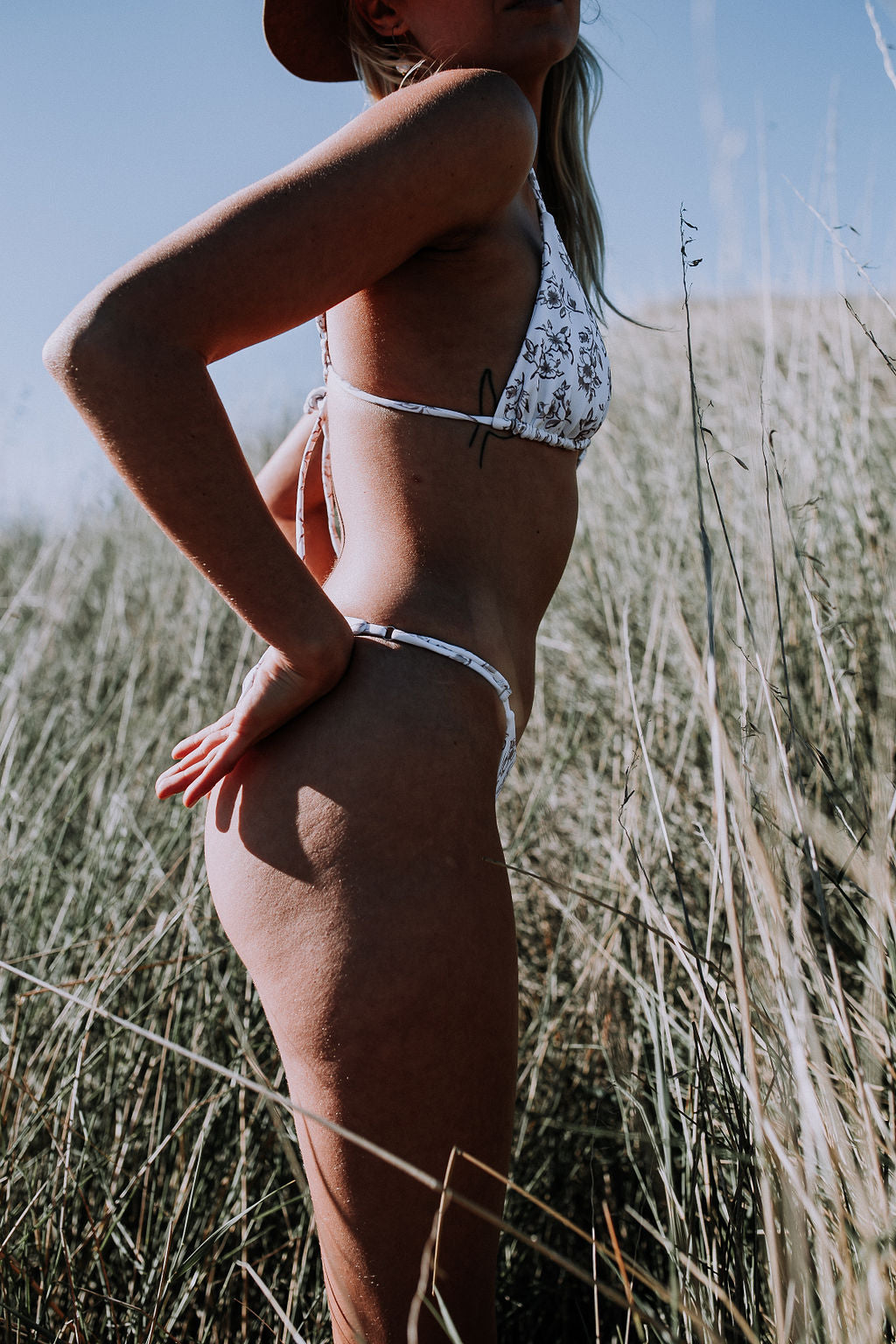 The Oak Set is one of our best sellers. This triangle style bikini top features adjustable string straps that go over your shoulders and back tie. The Oak top is double lined for comfort and support.