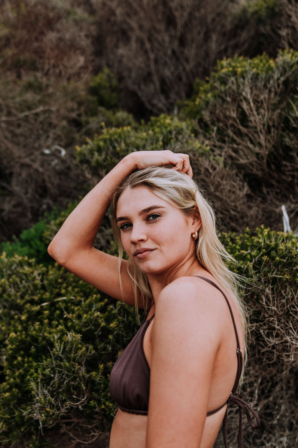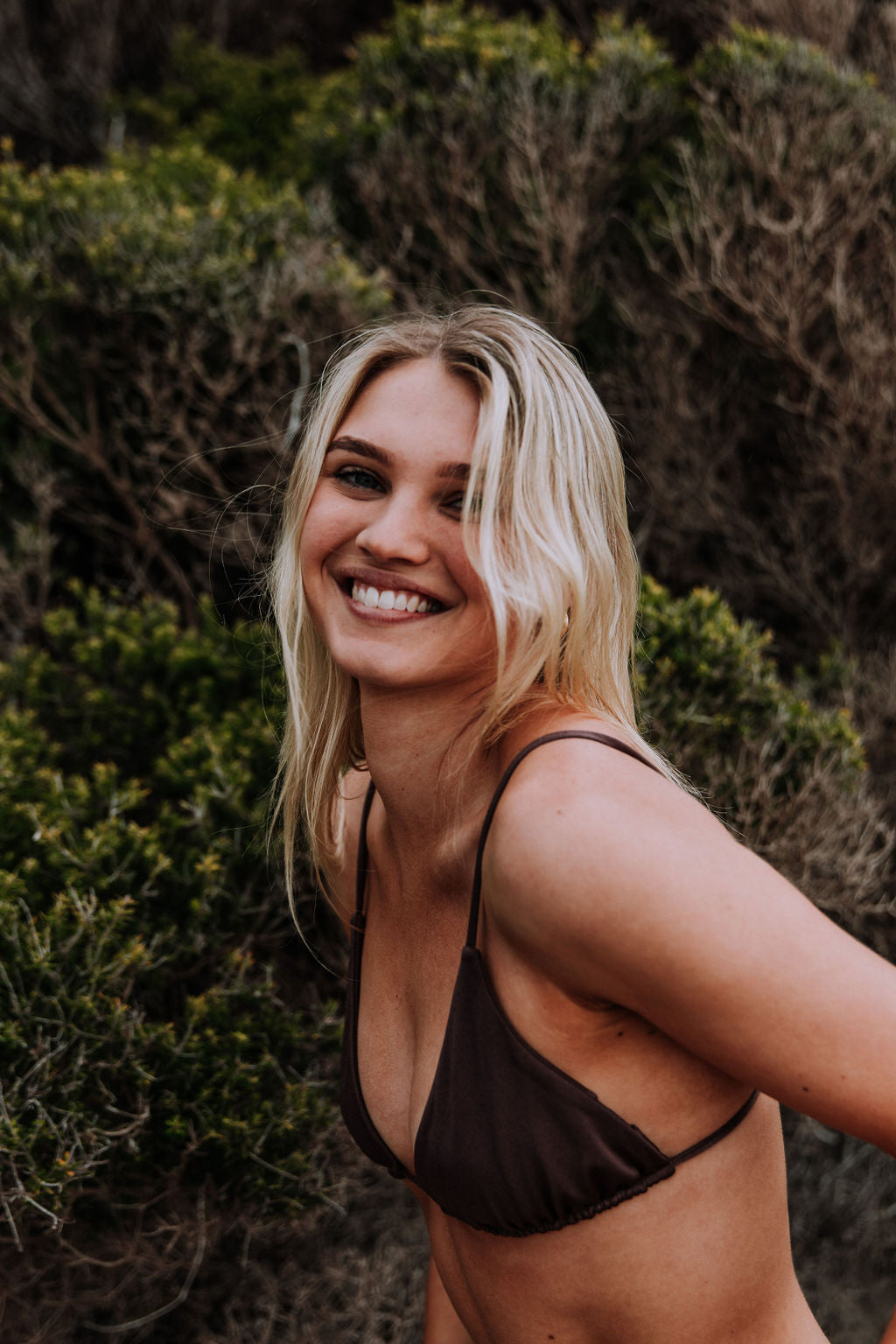 The Oak Set is one of our best sellers. This triangle style bikini top features adjustable string straps that go over your shoulders and back tie. The Oak top is double lined for comfort and support.
